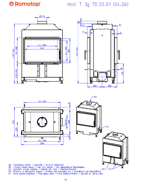 - Romotop HEAT T 2g 70.50.01 топка для камінів спроектована для конвекційного та акумулюючого обігріву